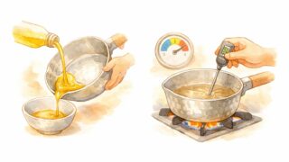 結論先出し|雪平鍋は「油返し+温度管理」で焦げを防げる雪平鍋は焦げやすい鍋だと思われがちですが、実際には使い方次第で長く快適に使い続けることができます。ポイントは「油返し」と「温度管理」、そして「水分コントロール」の3つです。焦げの多くは、...