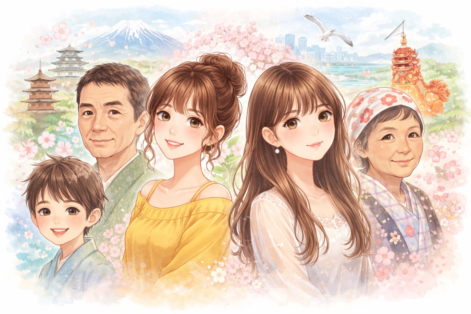 生まれ育った場所だけで顔の特徴が決まるわけではなく、家族のルーツや生活環境、時代背景などさまざまな要素が重なり合っています。