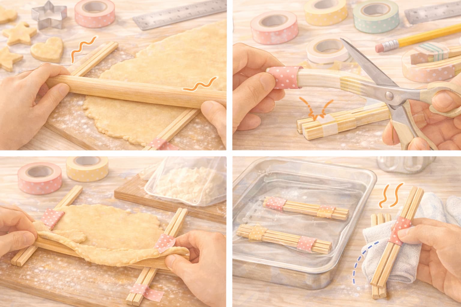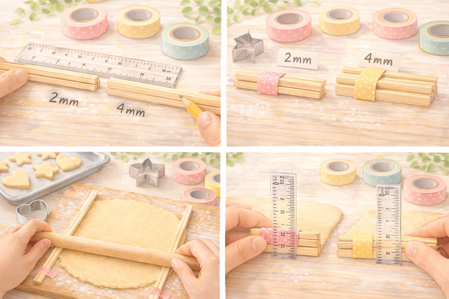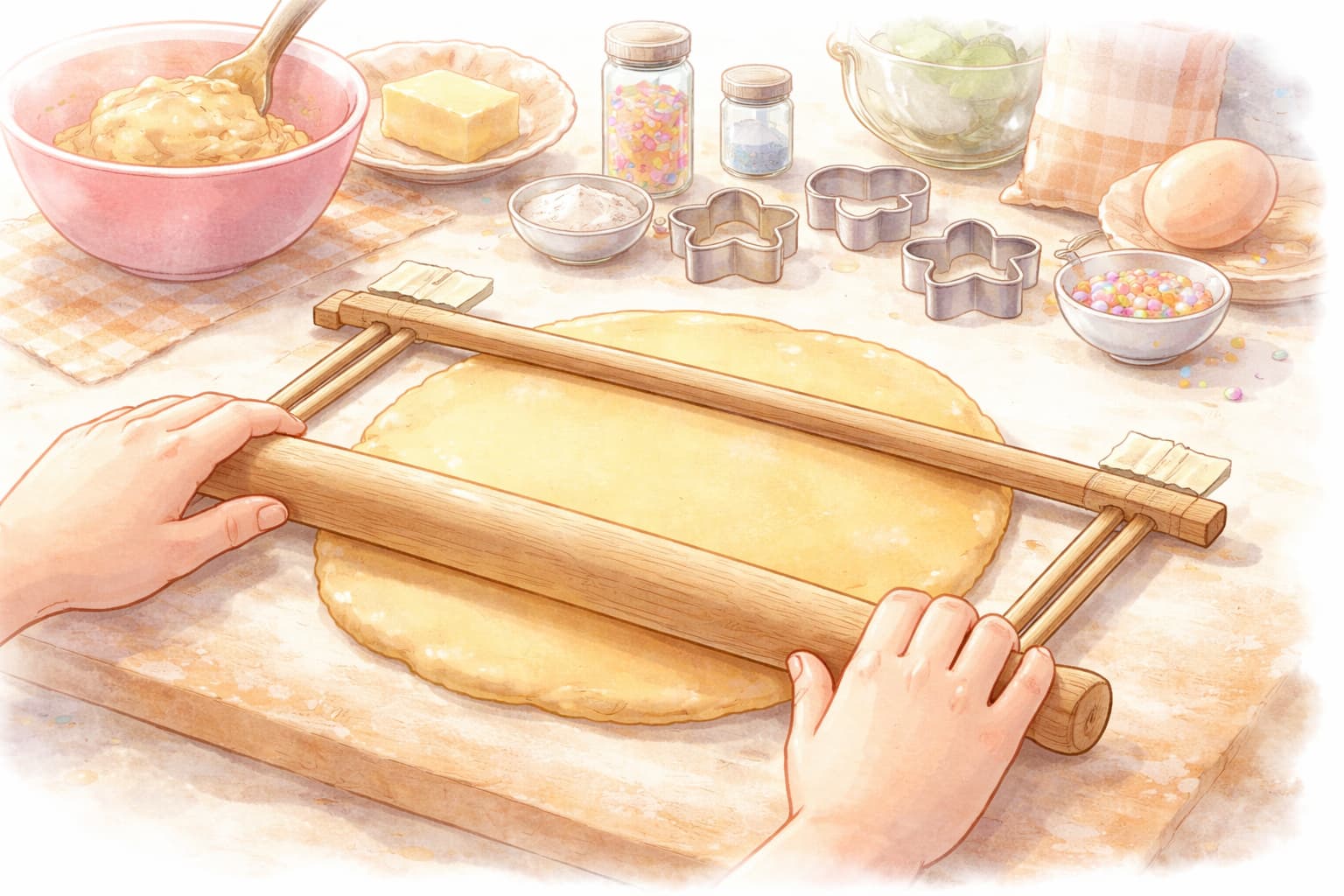 この記事では、「3mmの厚みにそろえたい」「焼きムラを減らしたい」「アイシング向けに均一にしたい」といった悩みに向けて、割り箸で作る代用品の考え方から、作り方、使い方、失敗しやすいポイント、他の代用品との比較までをまとめます。