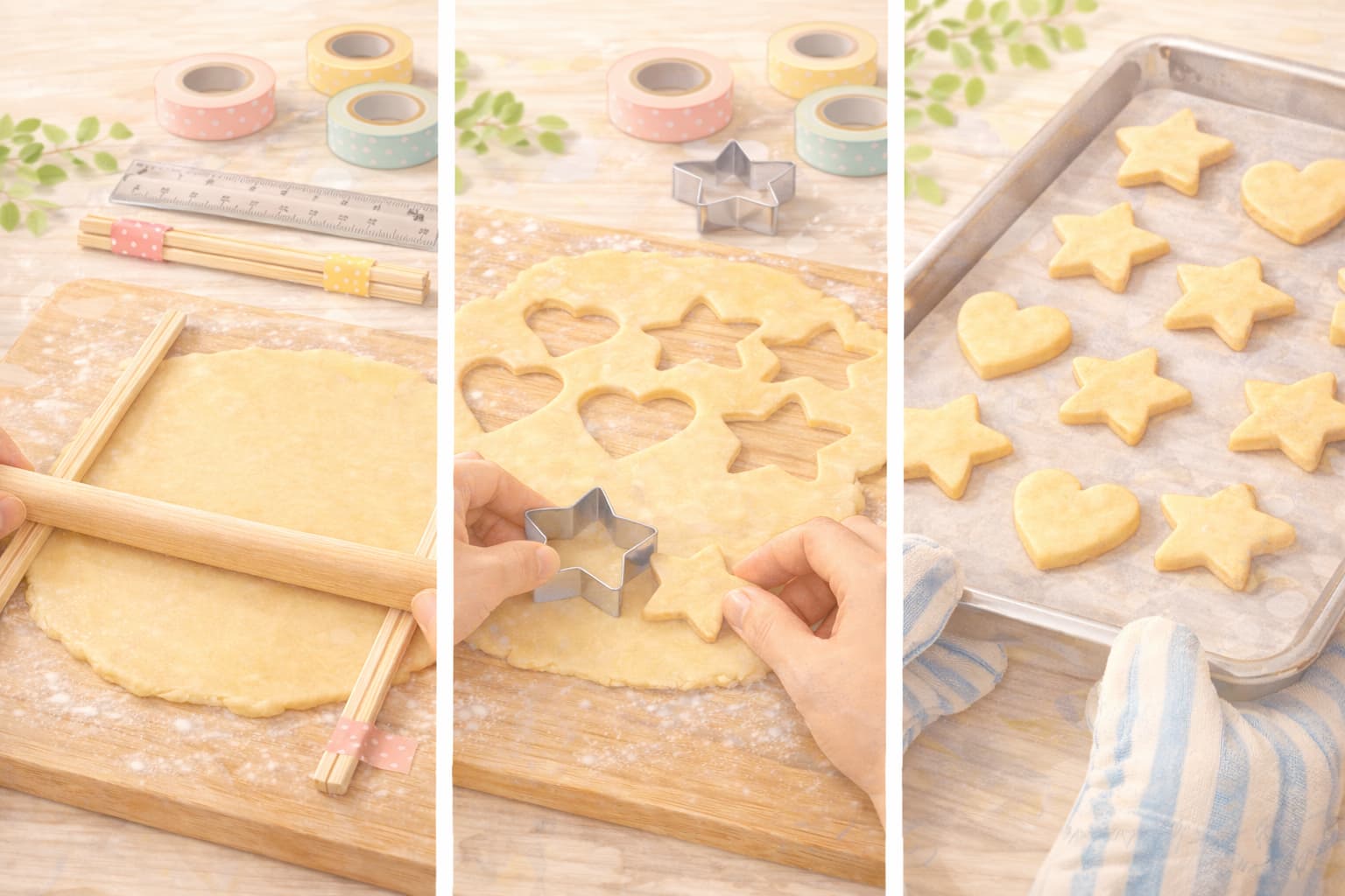 クッキールーラーが手元にないときでも、厚みをそろえたクッキー作りはあきらめなくて大丈夫です。