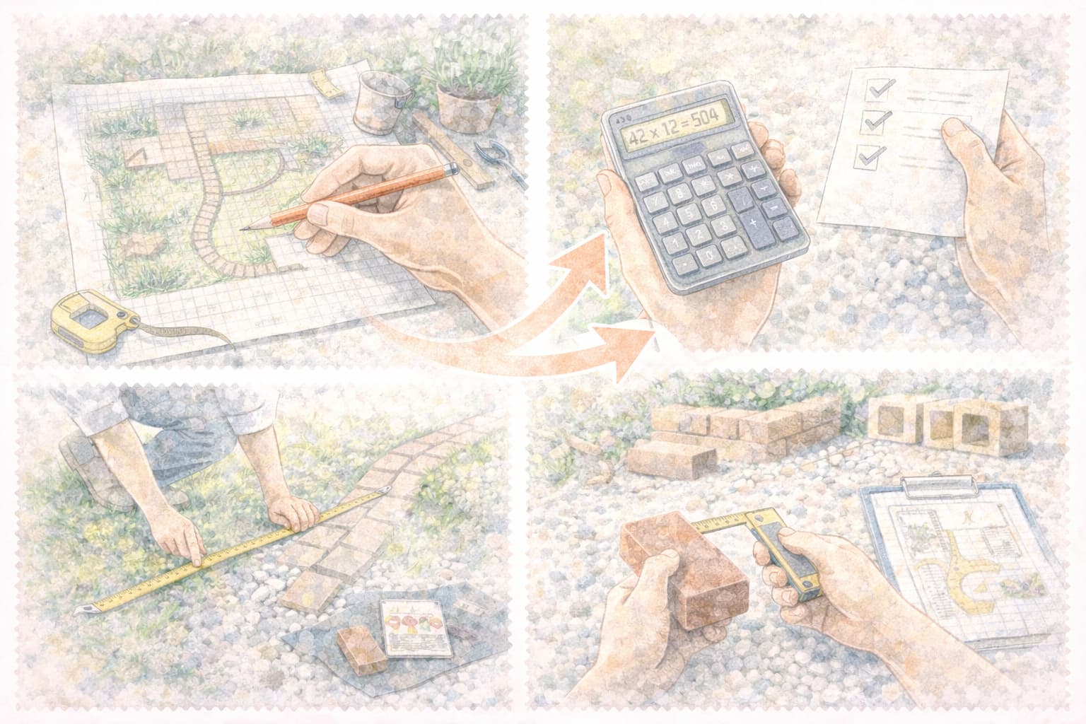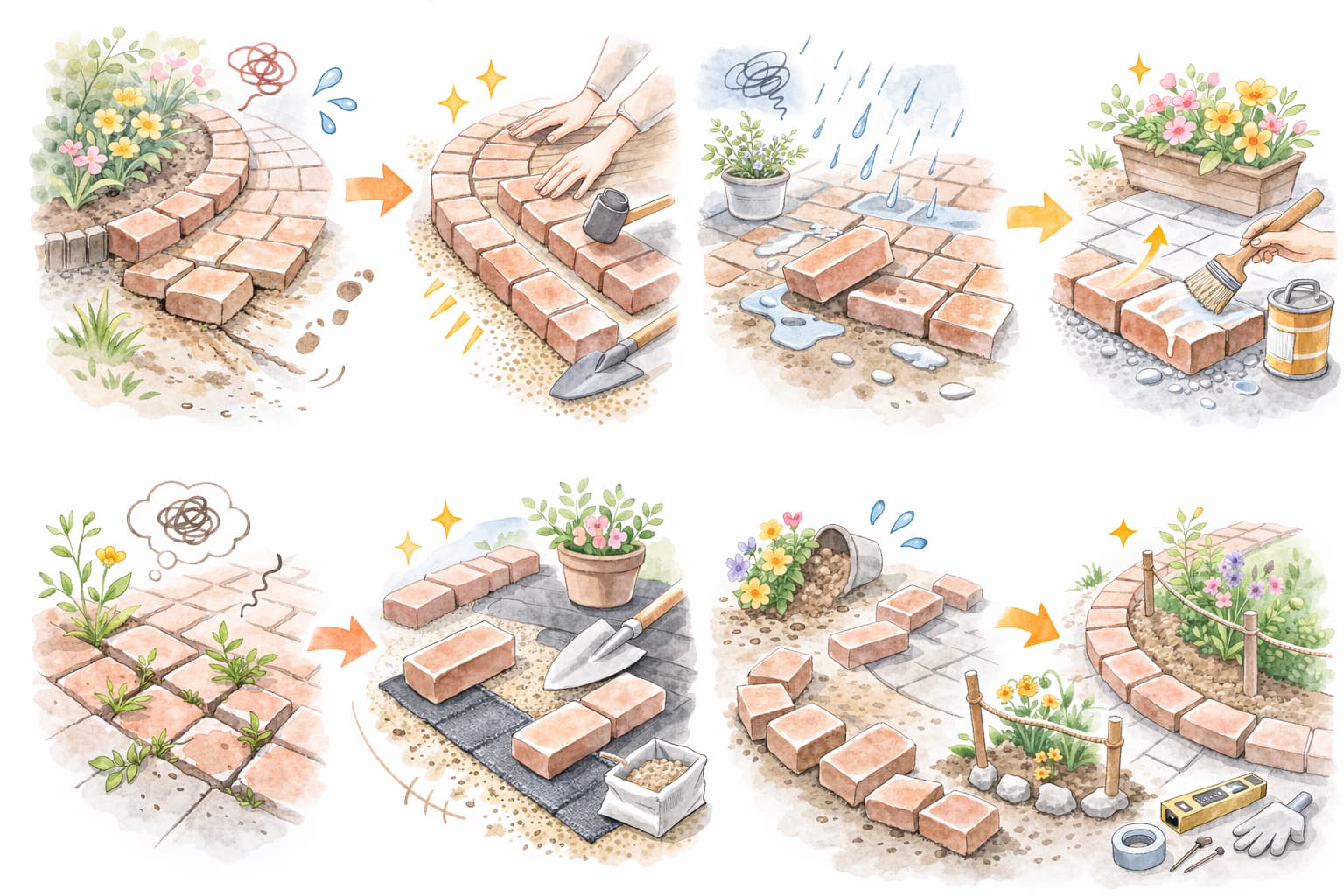 例えば、小道は砂利多め+レンガ少なめ、縁取りはレンガ中心でシンプルなど、目的に応じて配分を変えると無駄が出にくくなります。