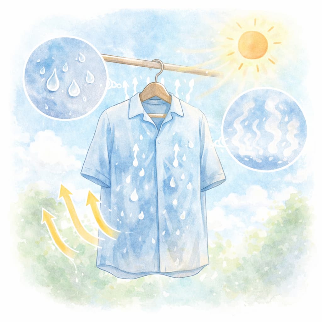 衣類を軽く引き離して空気の層を作ることで、乾きやすさが大きく変わります。