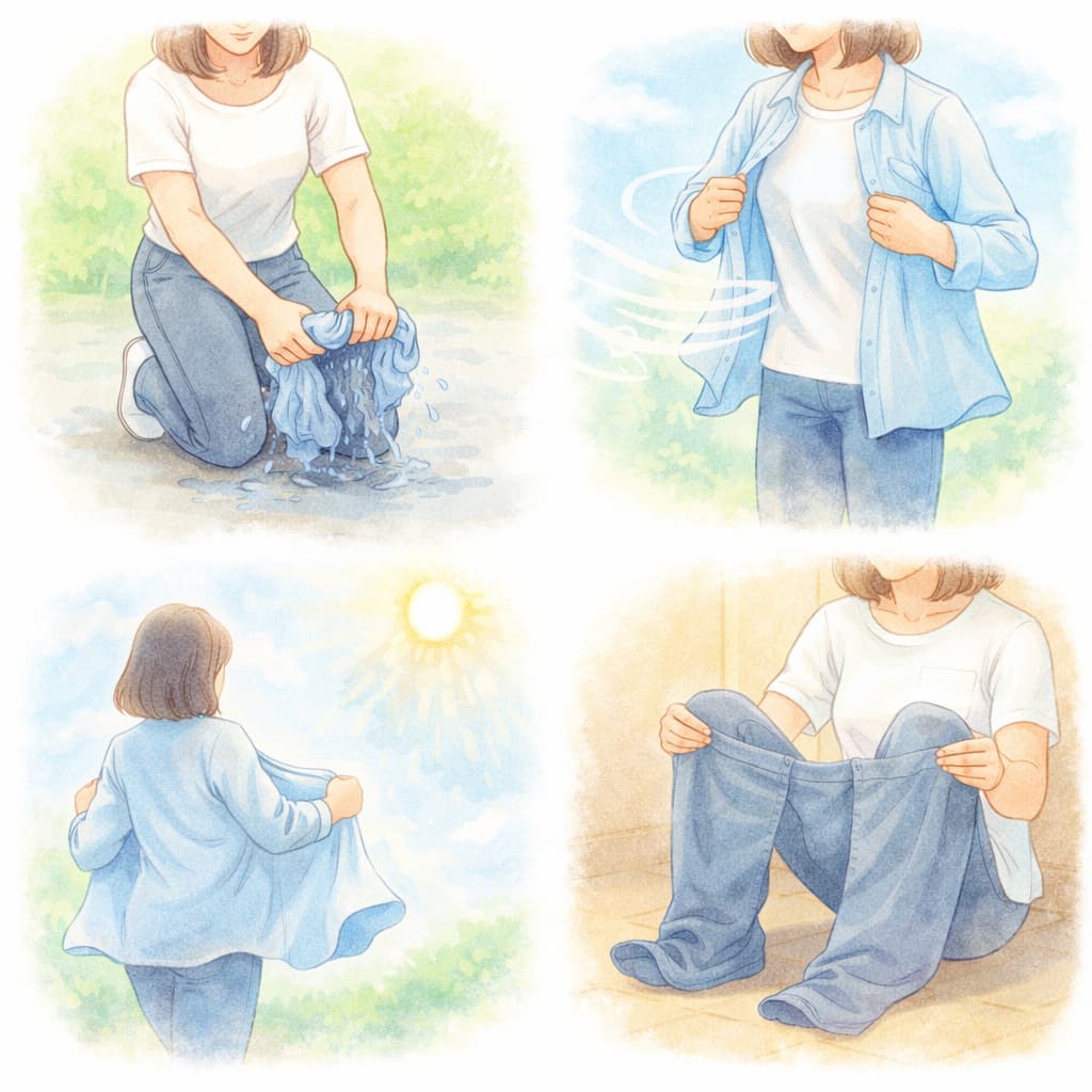 袖口や裾、背中など乾きやすい箇所から進めると効果を実感しやすく、次の行動にも移りやすくなります。