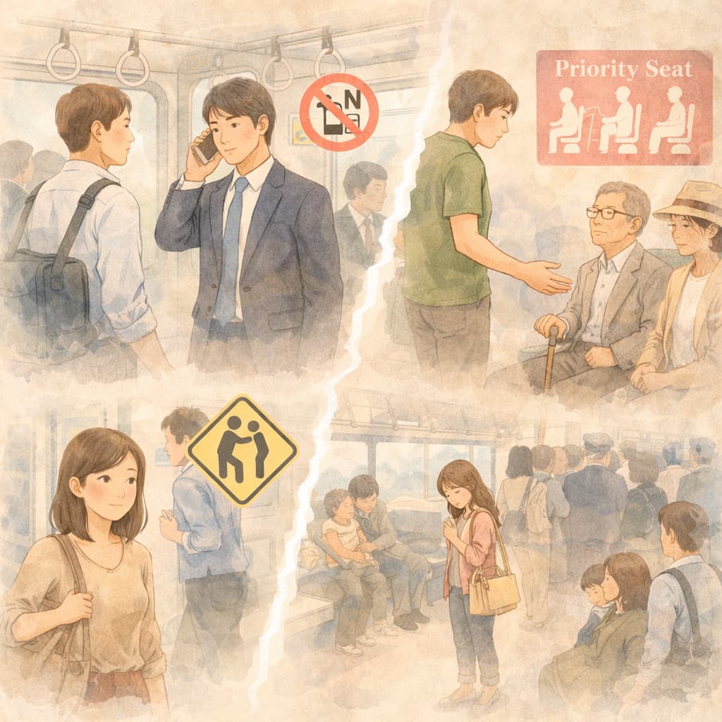 日本の電車マナーは、明確な禁止事項として細かく提示されているわけではなく、「暗黙の了解」として共有されている部分が多くあります。