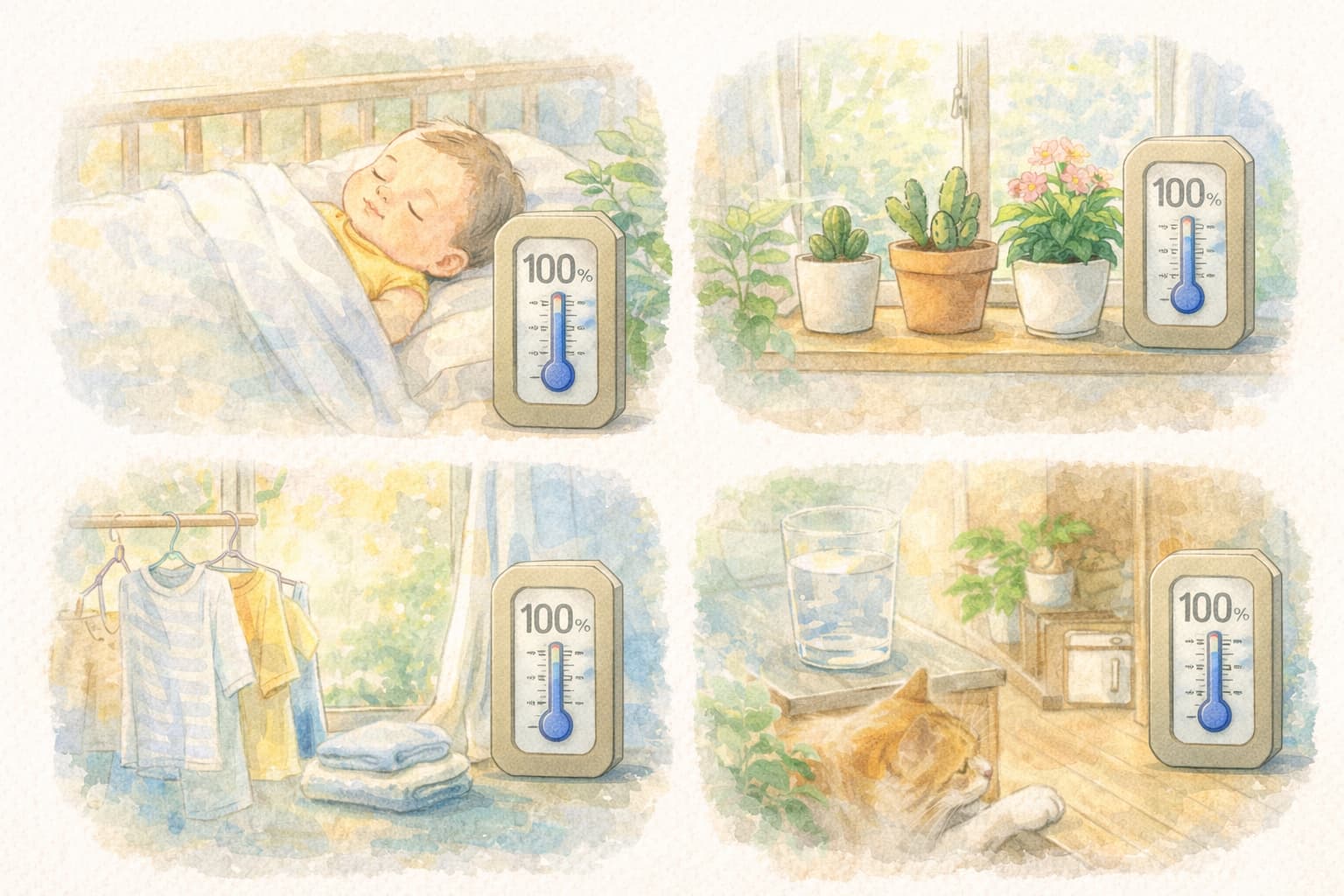 湿度計があれば、場所ごとの違いを具体的に確認できるため安心感につながります。