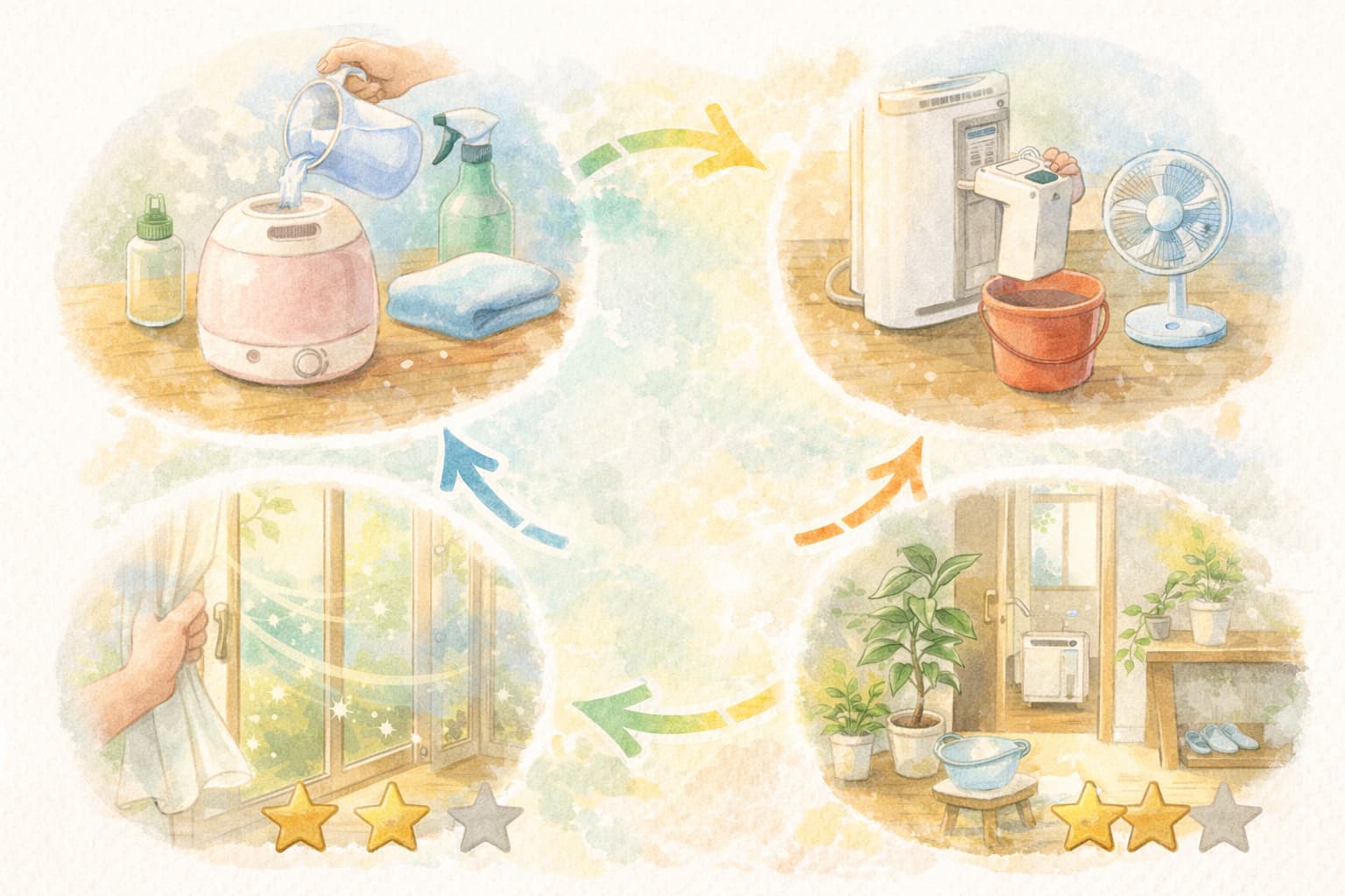 湿度が気になったときは、日常の中でできるシンプルな工夫から始めるのがおすすめです。