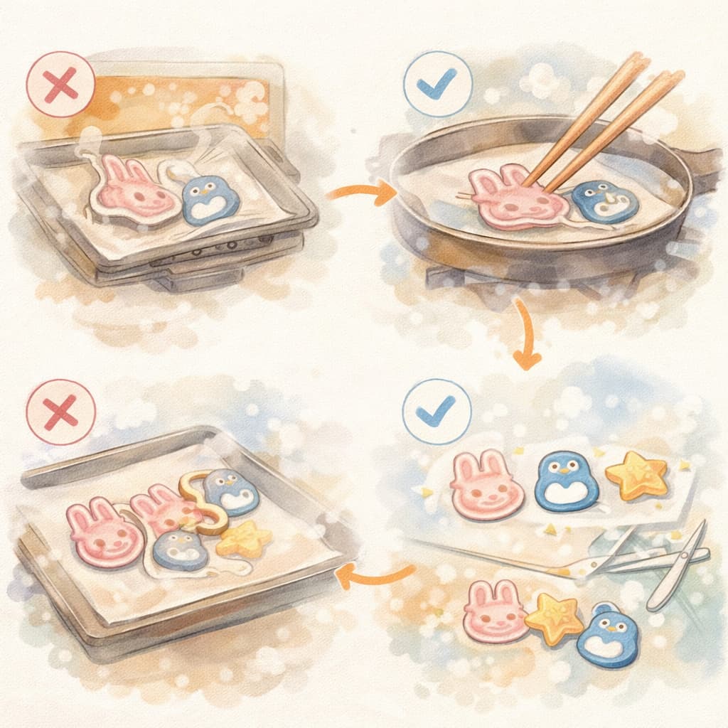 落ち着いて最後まで加熱し、完全に縮んでから取り出すことを意識するだけでも、仕上がりは大きく変わります。