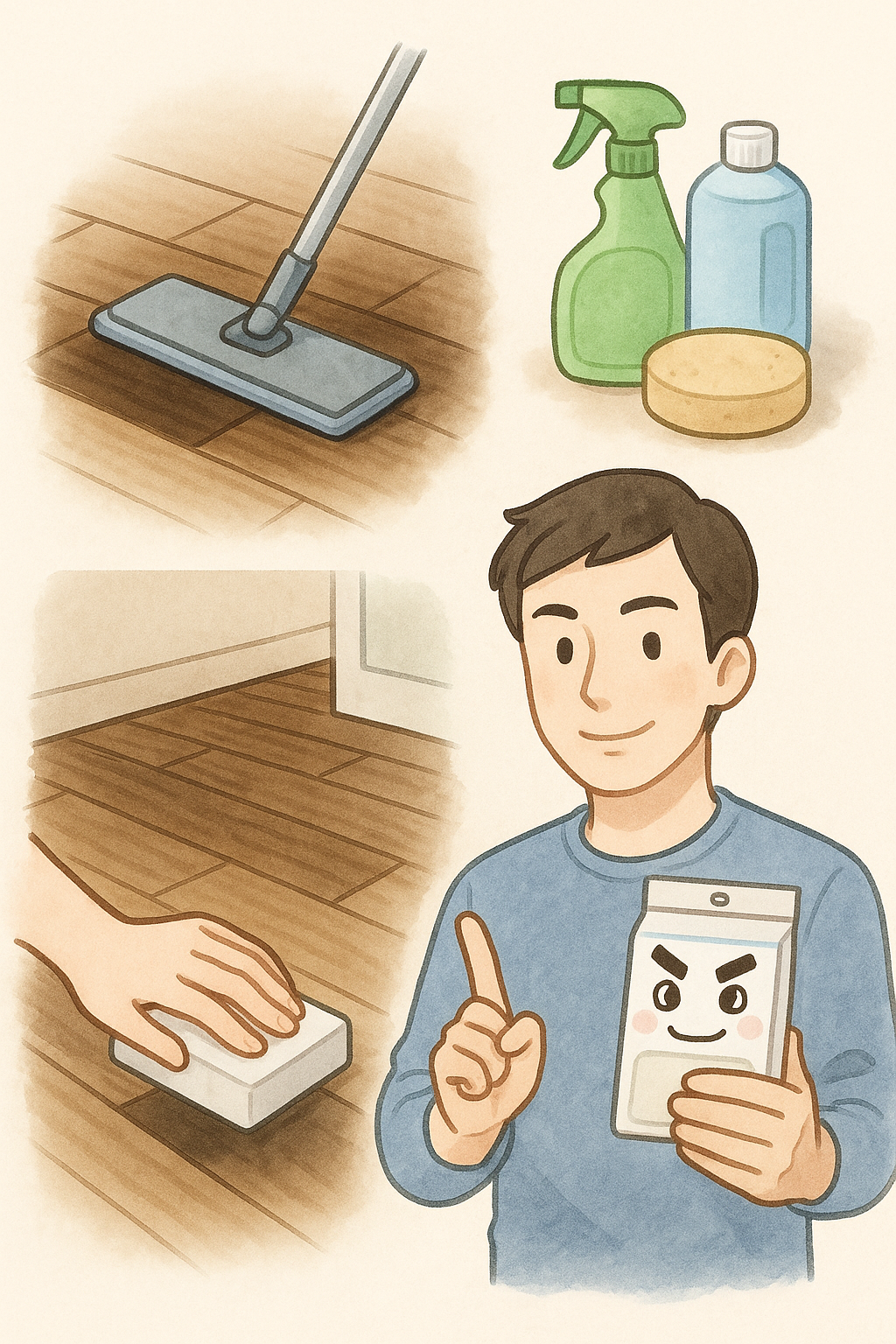 ここでは、基本の掃除手順から、おすすめの洗剤や便利アイテム、話題の「激落ちくん」を活用したテクニックまで、フローリングの黒ずみを効率よく落とす方法を詳しく紹介します。