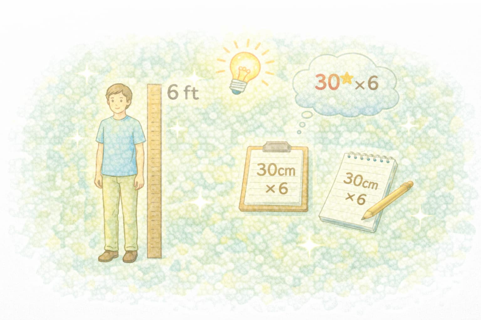 完全に暗記するというより、「フィートは30.48cm」「6フィートならそれを6倍」と流れで覚えると、数字の意味も一緒に残りやすくなります。