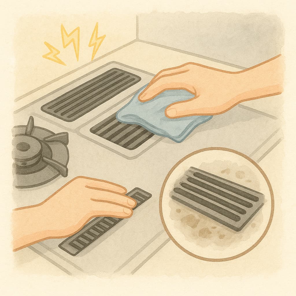 排気口が汚れると、調理中に発生した煙や蒸気の排出が妨げられ、キッチン全体が煙たくなる原因になります。