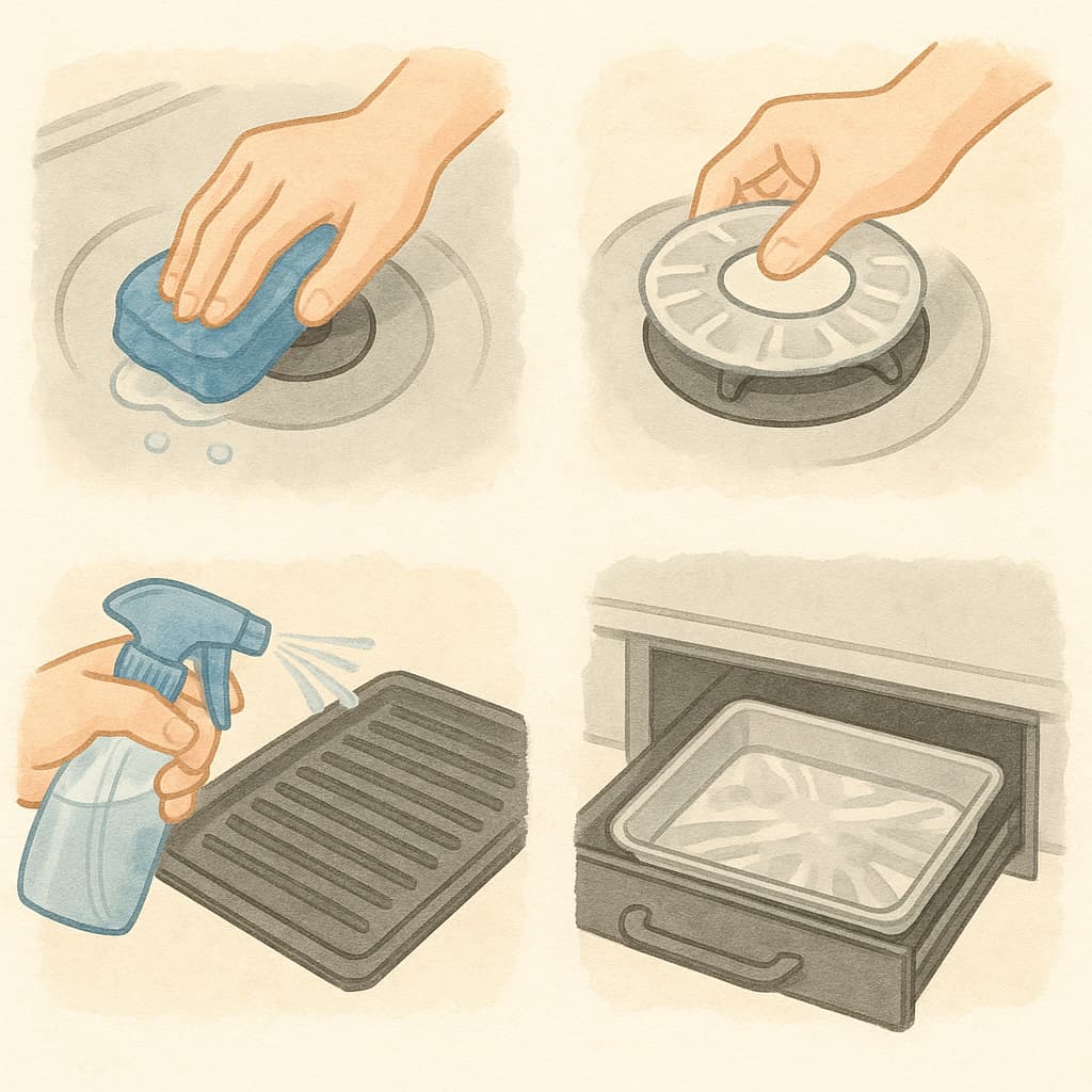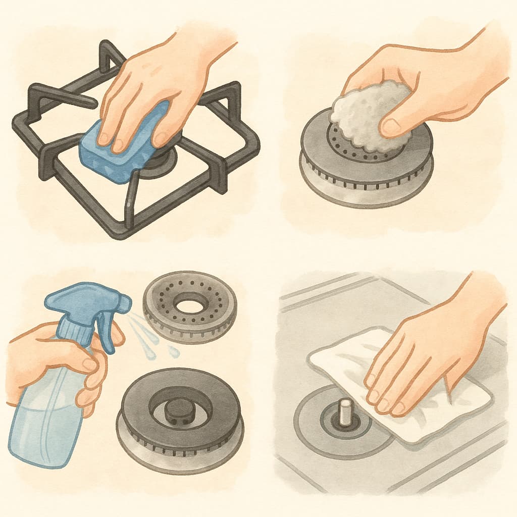 細部までしっかりと掃除して、コンロ全体の機能を高めましょう。