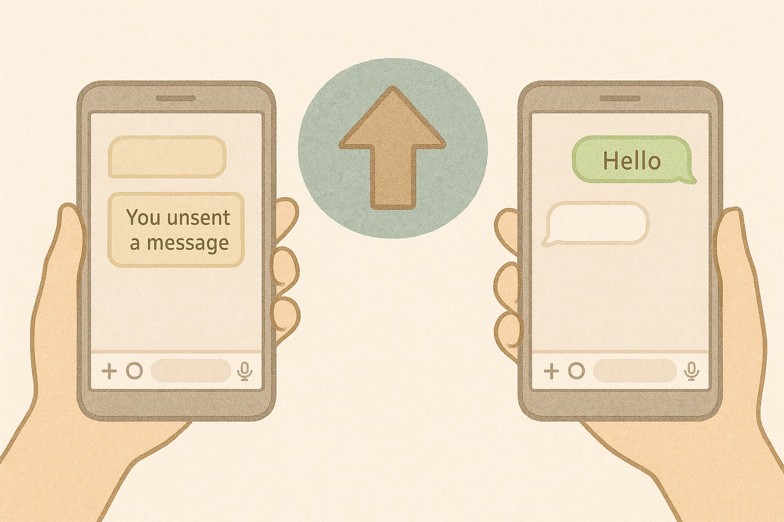 さらに、送信取り消し後に続けて不自然なメッセージを送ると、相手は余計に違和感を抱きます。