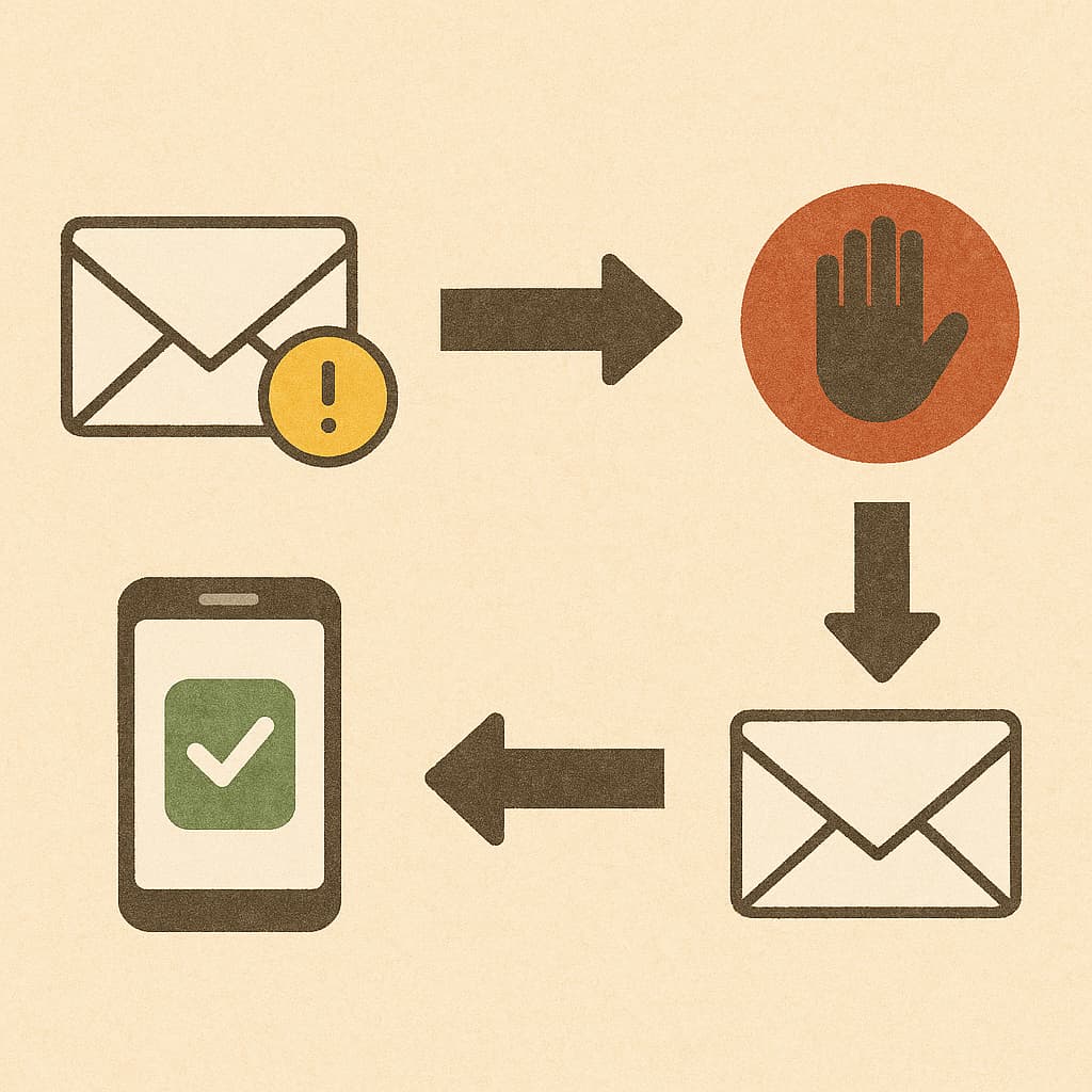 フィッシングメールや不審な通知を受け取ったとき、最も大切なのは「絶対に焦らないこと」です。