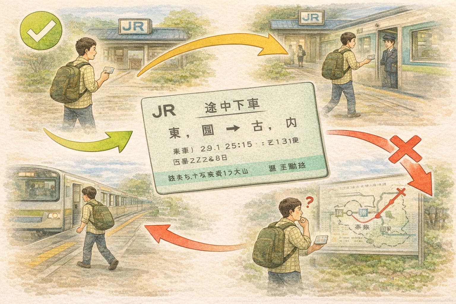 途中下車は便利な制度ですが、JRのルールを正しく理解していないと「使えると思っていたのに使えなかった」「改札で止められた」といったトラブルにつながりやすいポイントでもあります。