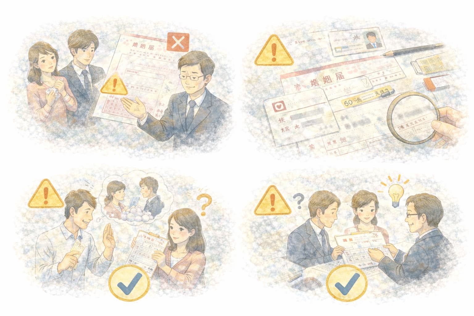 婚姻届が受理されない場合、多くは「ちょっとした見落とし」が原因です。