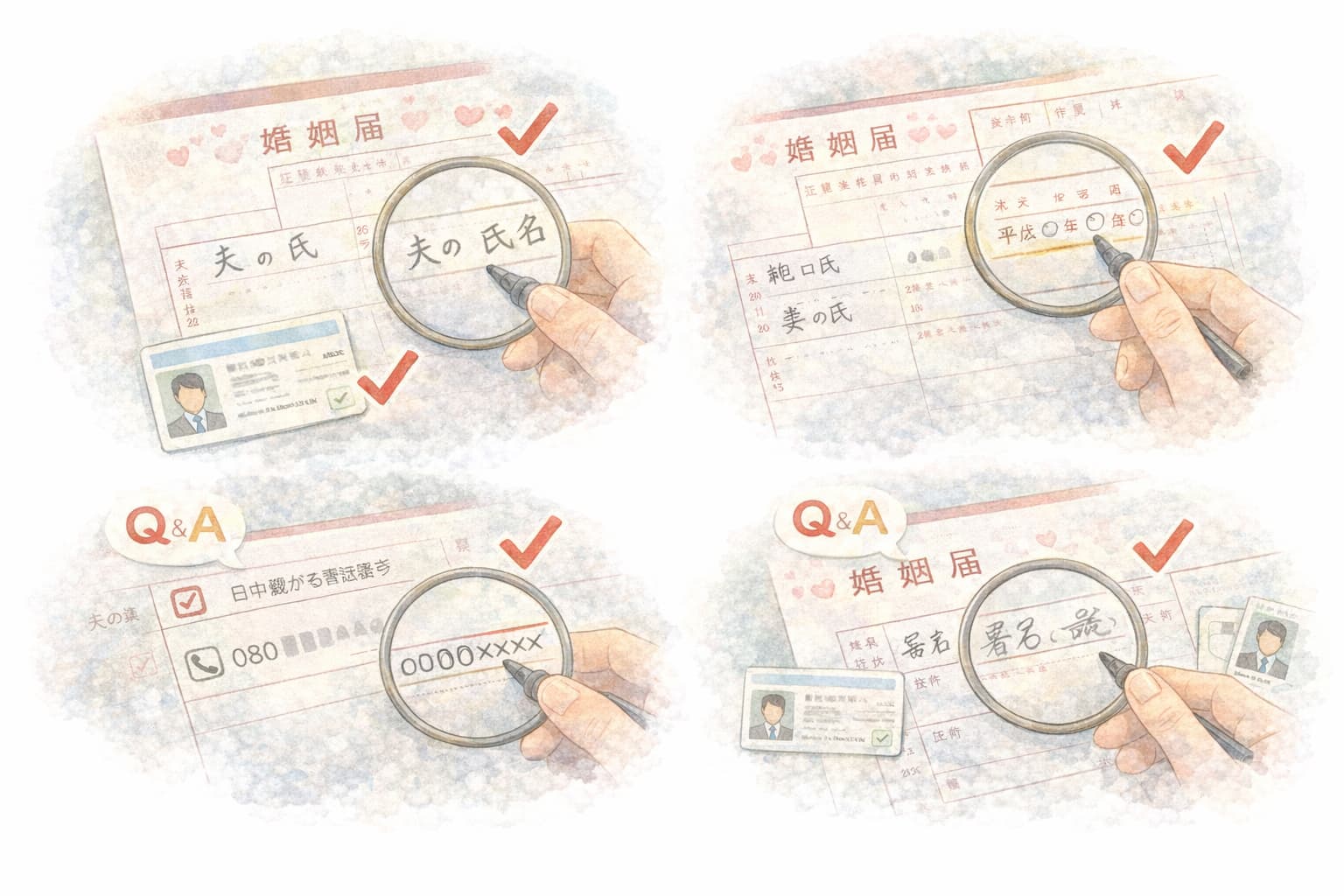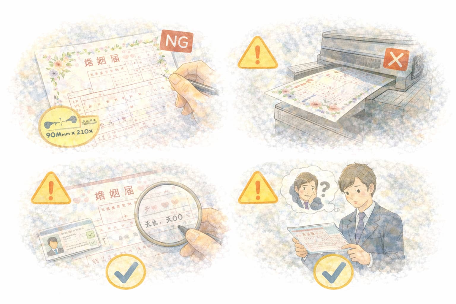 婚姻届は、見た目が整っていても、記入内容に不備があると受理されません。