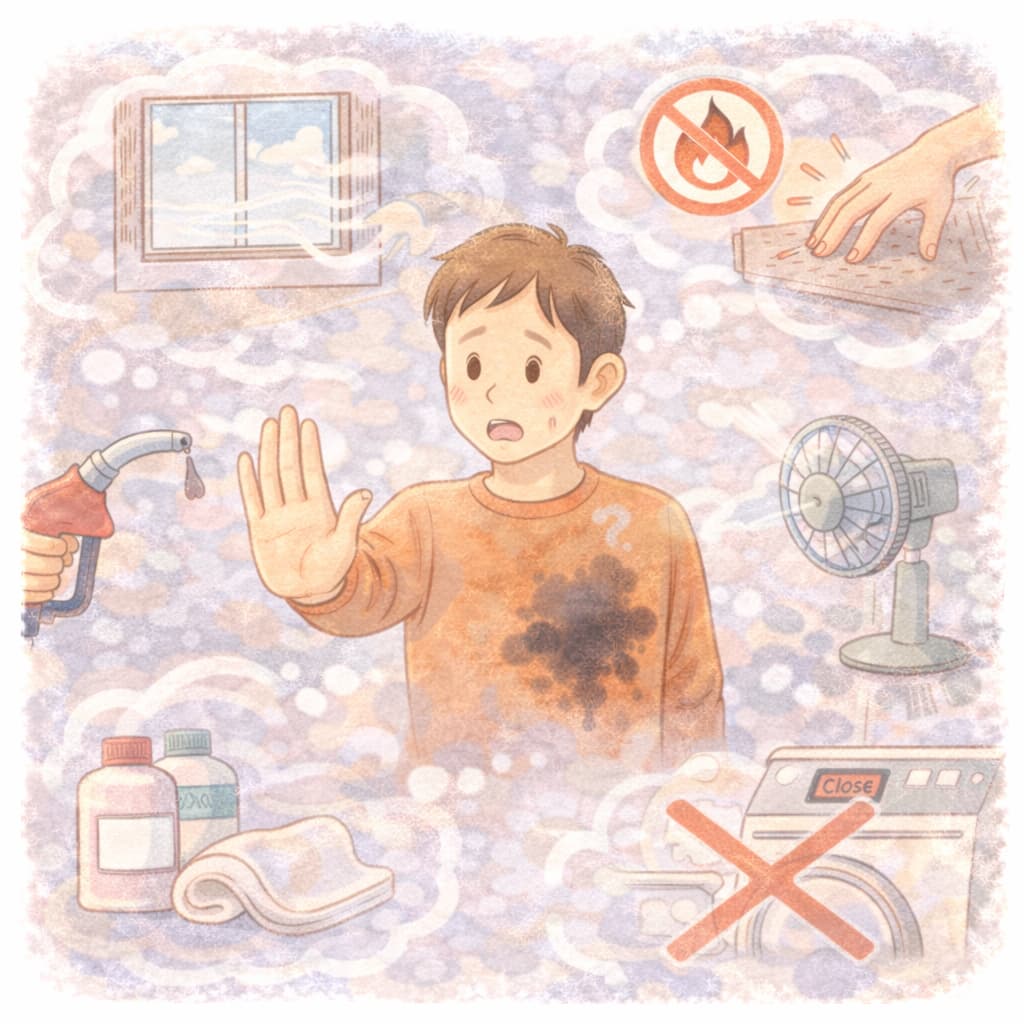 ガソリンが服についた場合は、まず安全を確保し、換気と拭き取りを優先します。
