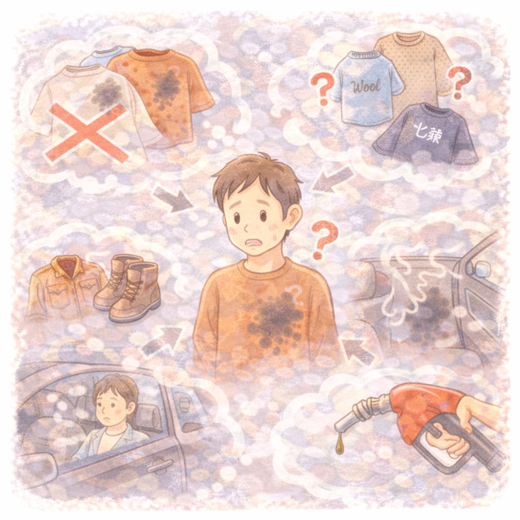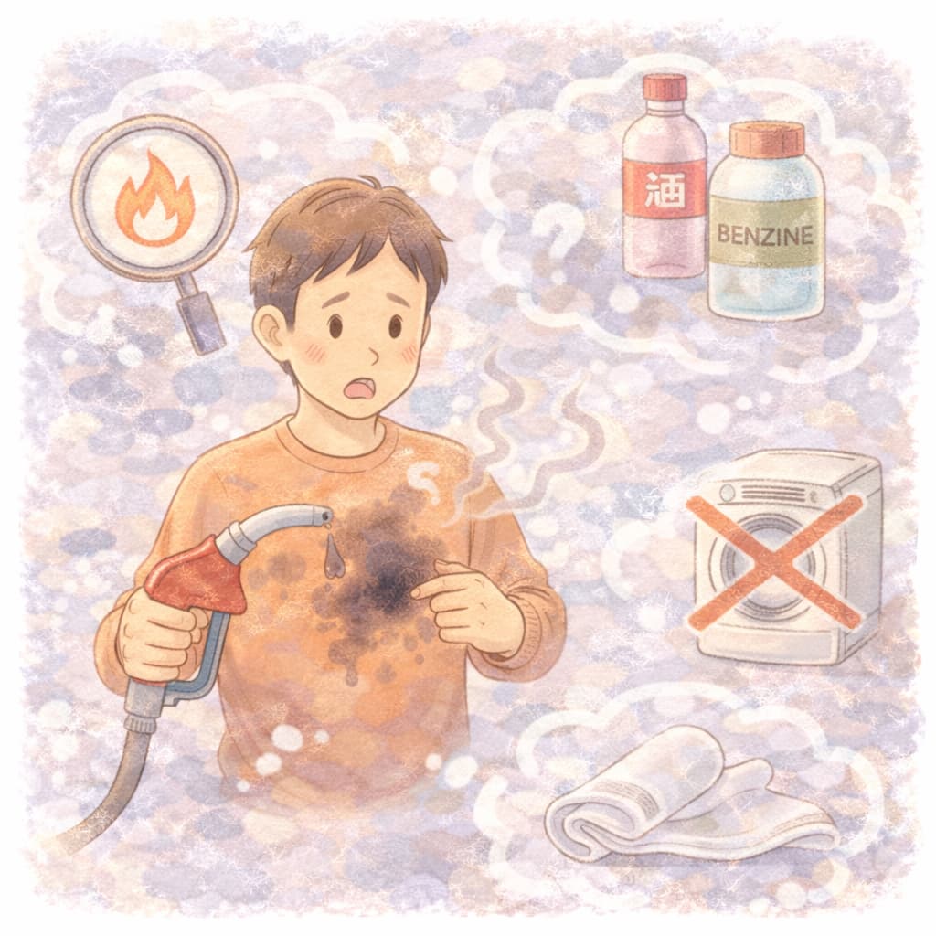 この記事では、ガソリンが服についた直後に行える応急処置から、自宅での洗濯方法、臭いを抑えるための具体的な対策までを順を追って解説します。