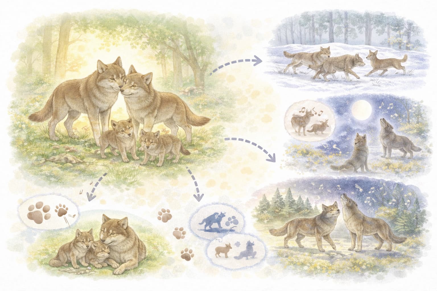 パックは単なる集団ではなく、親となるつがいとその子どもたちを中心とした家族単位で構成されることが多く、狩りや子育て、縄張りの維持を協力して行います。