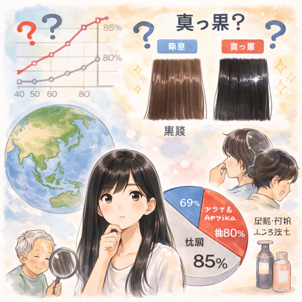 この章では、黒髪の割合とともに、“真っ黒”と感じられる髪がなぜ目立つのか、その背景を整理していきます。