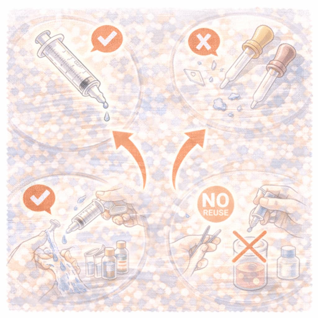 この用途では、目盛り付きで先端が細いシリンジタイプの器具が最も安定した選択肢になります。