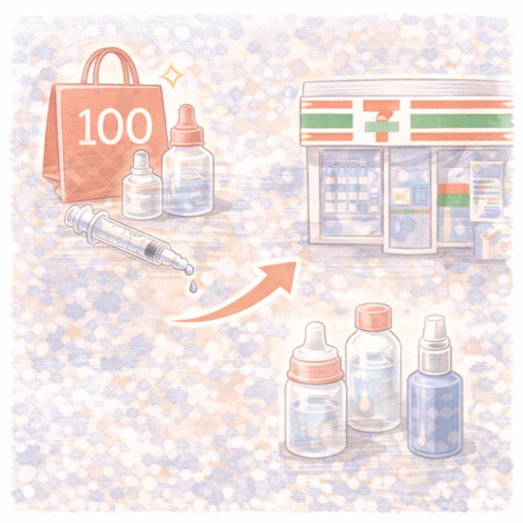 ただし、コンビニ商品は本来スポイト用途を想定していないため、精度や衛生面には限界があります。
