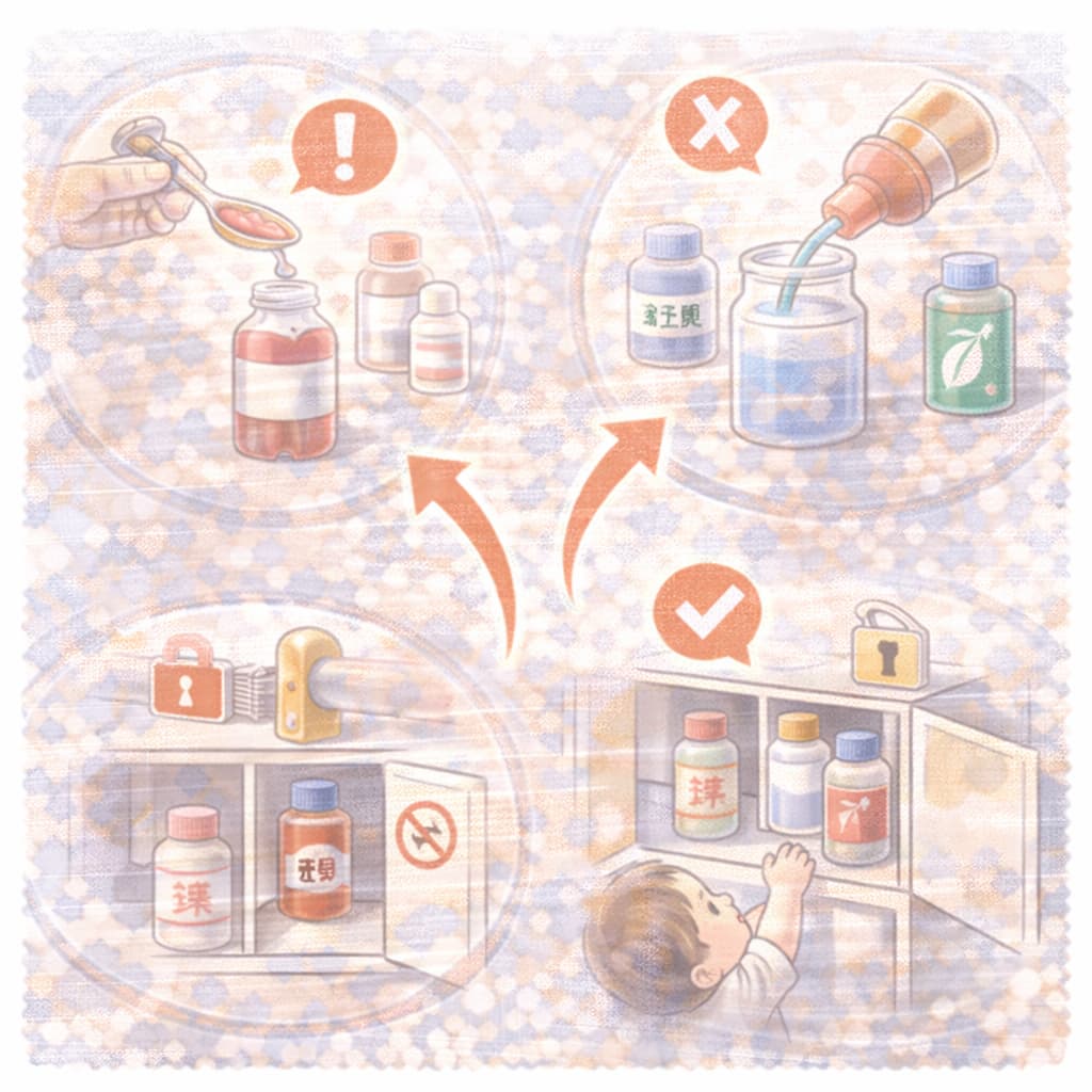 誤飲や誤用を防ぐため、使用後はすぐに洗浄し、保管場所にも注意を払いましょう。