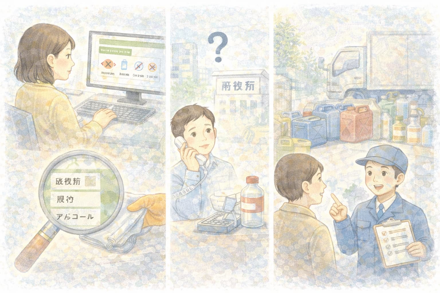 業者を探す際は「危険物 廃液 回収」「薬品 廃棄 業者」などで検索し、家庭からの回収実績があるかを確認すると安心です。