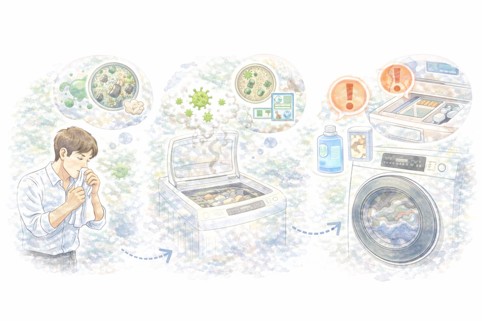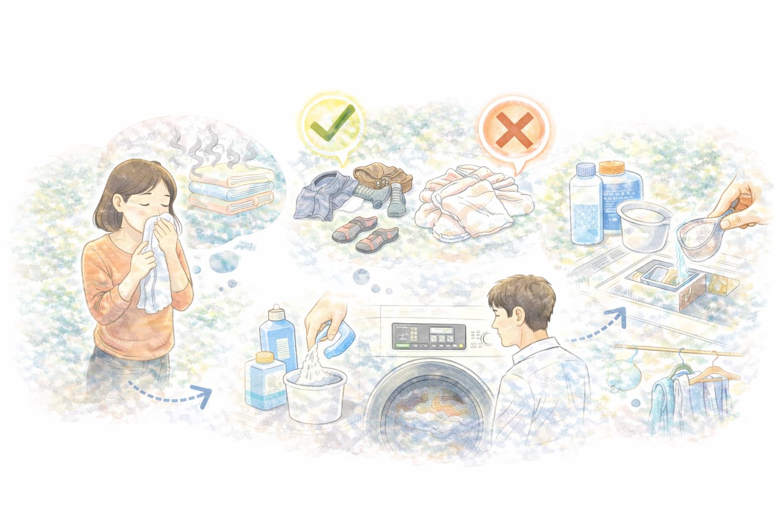 間違った対応をしてしまうと、衣類のニオイ残りや無駄な洗い直しにつながるため、最短で正しく対処する考え方を知っておくことが大切です。