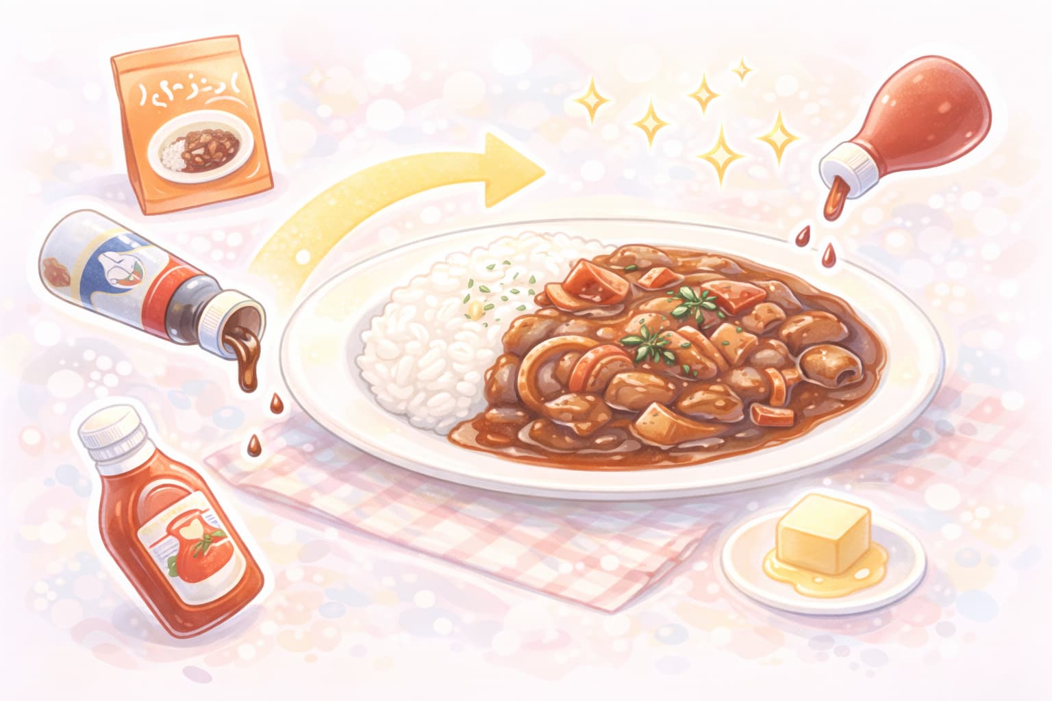 箱ルウの場合は、煮込み中にコクを足す調味料(オイスターソースや中濃ソースなど)を少量加えると、自然になじみやすい傾向があります。