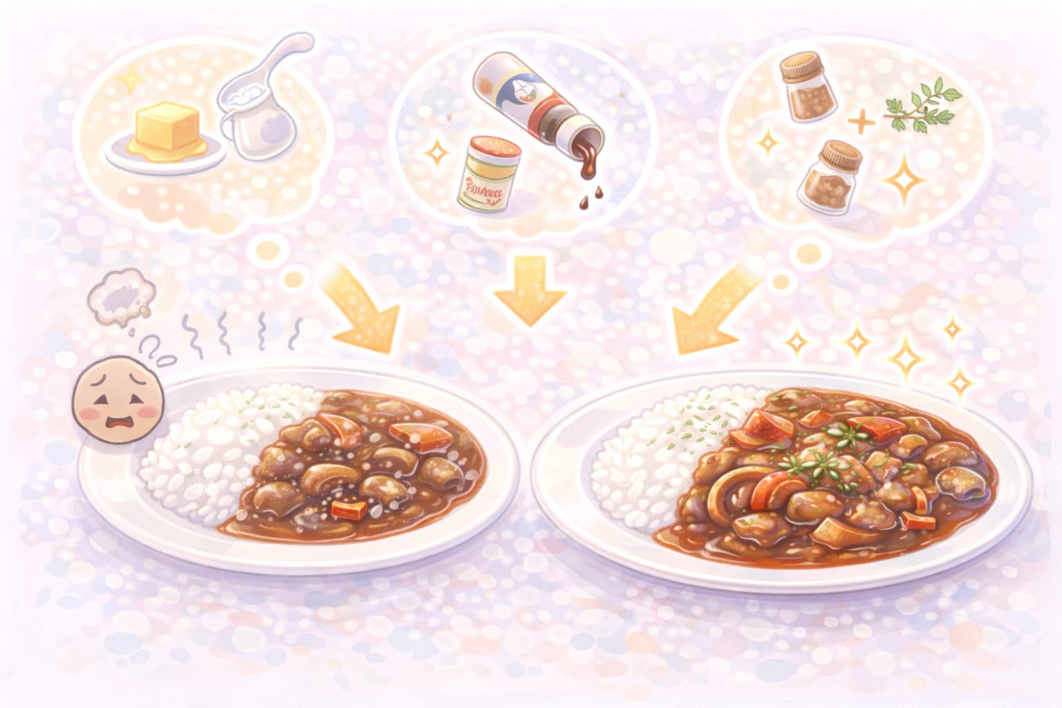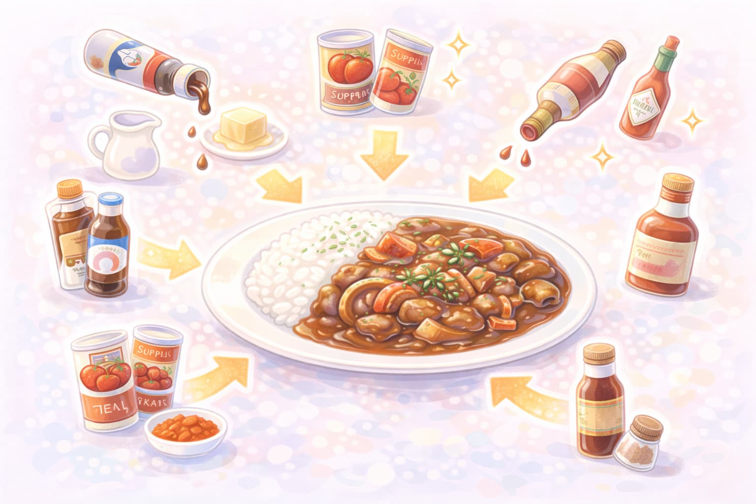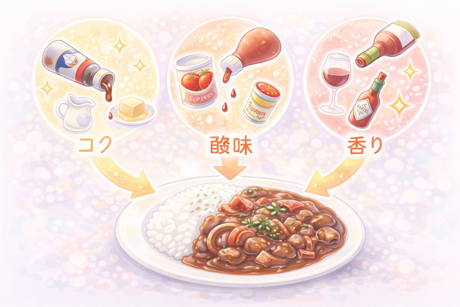 ハヤシライスの“ちょい足し”を成功させるためには、やみくもに調味料を加えるのではなく、「どの要素を補いたいのか」を整理することが大切です。