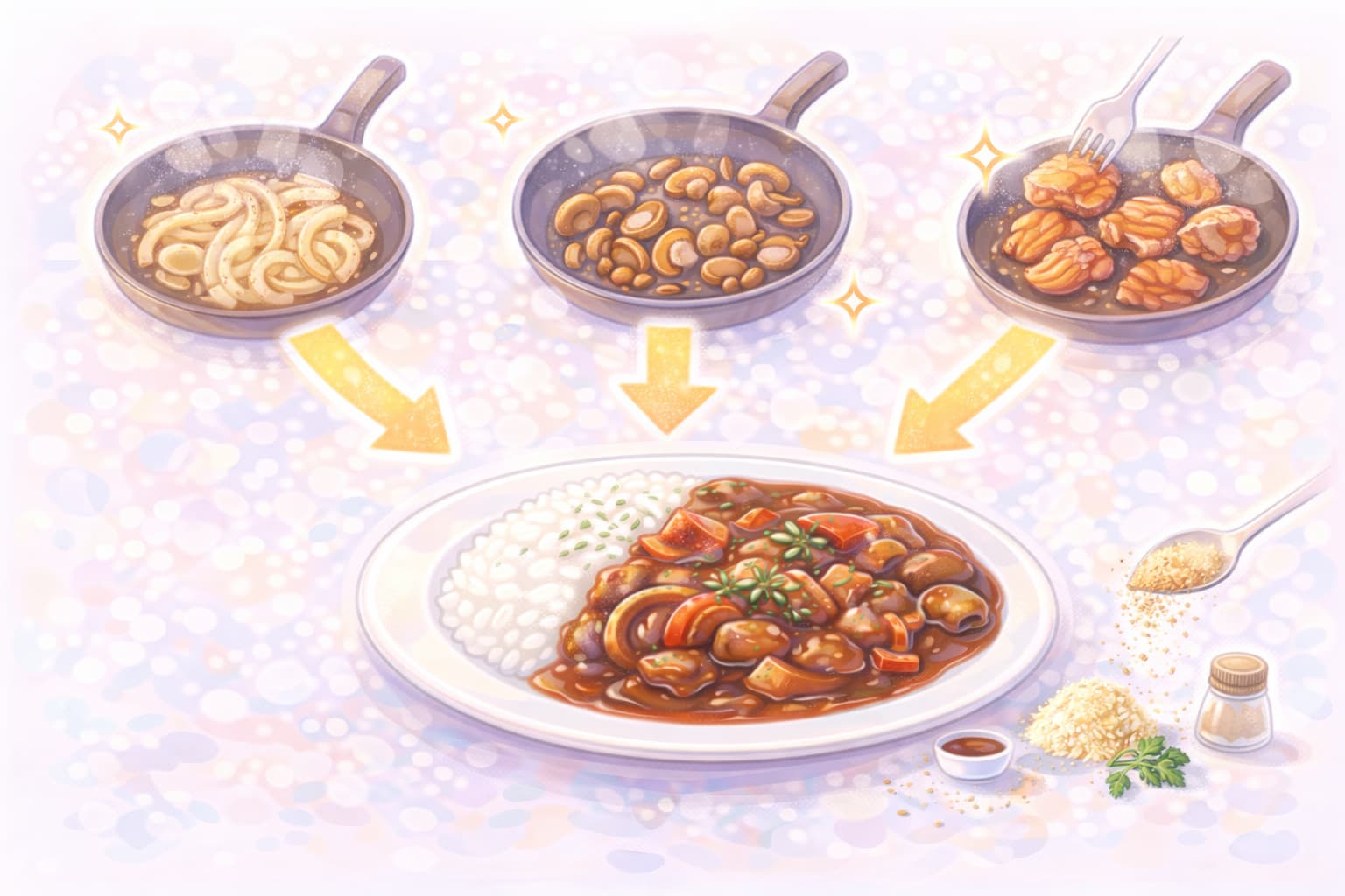 調味料だけでなく、具材の扱い方を少し変えるだけでも、ハヤシライスの完成度は大きく変わります。