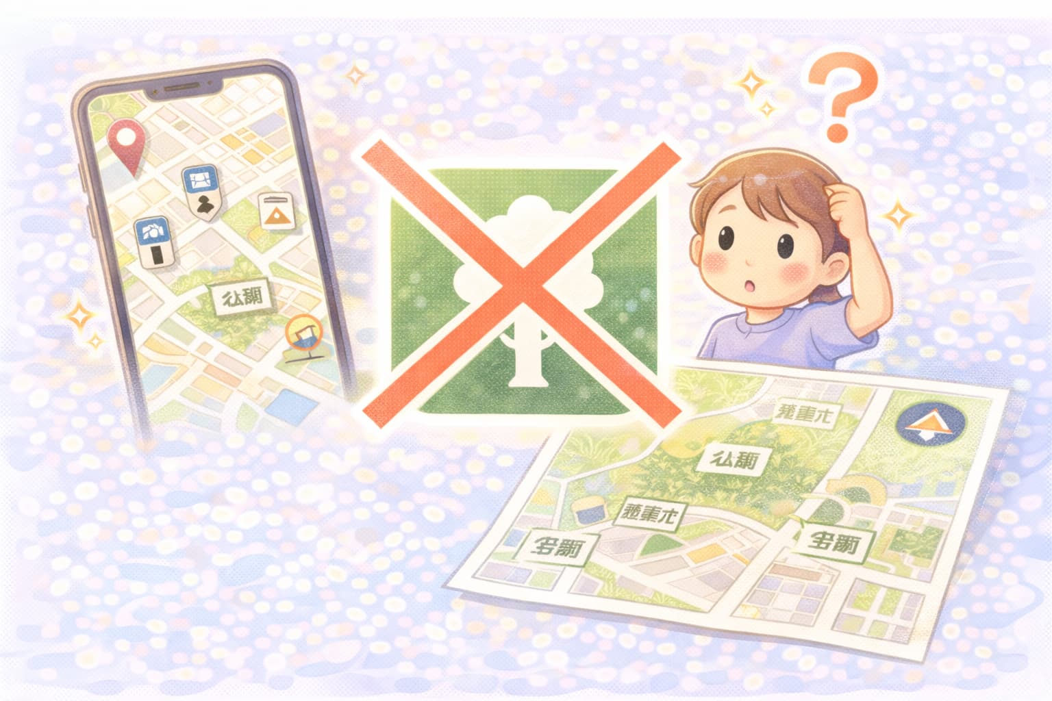 公園に専用の地図記号がないのは、地図の欠陥ではなく、見やすさや情報整理を重視した結果です。