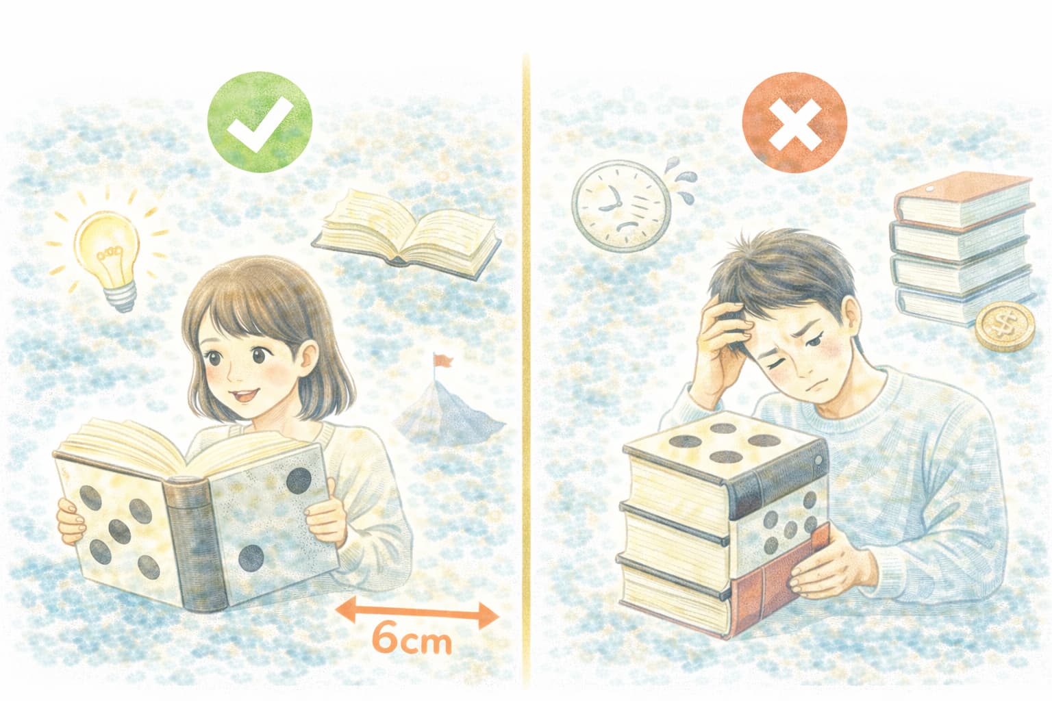 サイコロ本は「短時間で消費する本」ではなく、「じっくり向き合う本」と捉えることで、心理的なハードルは下がります。