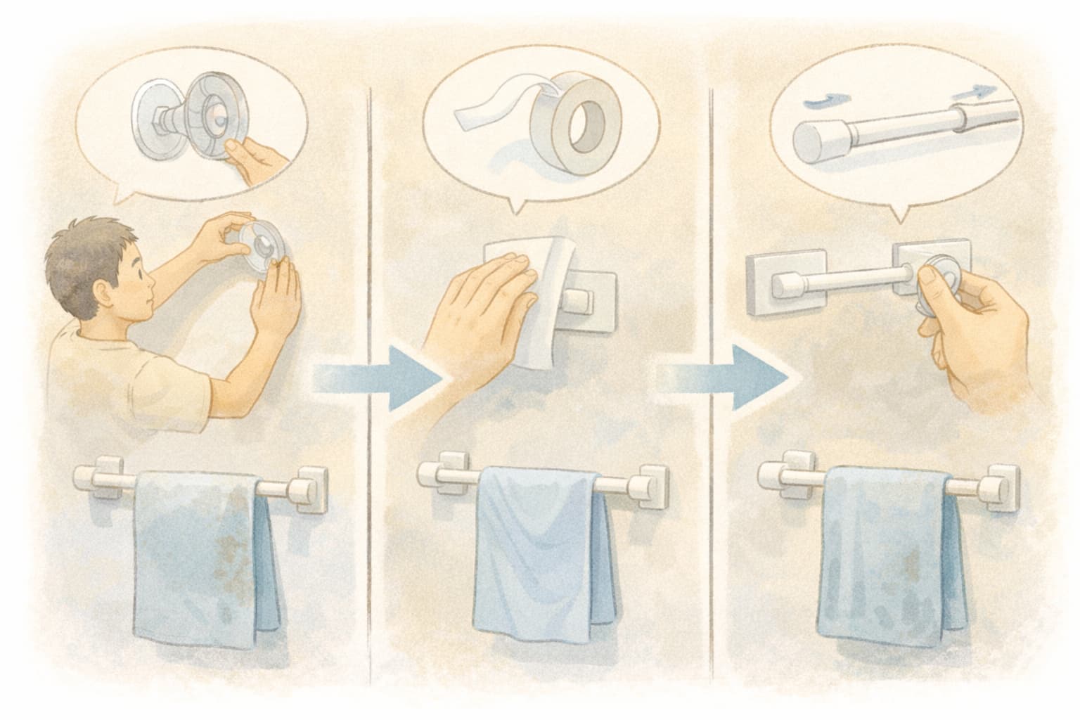 賃貸住宅では退去時の原状回復が前提になるため、タオル掛けの設置方法は慎重に選ぶ必要があります。
