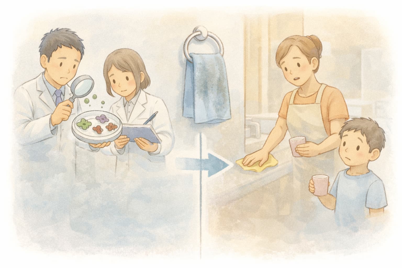 ただし、換気の有無、掃除の頻度、タオルの設置位置によって実際のリスクは大きく変わります。